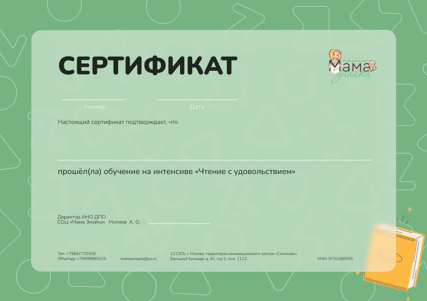 После изучения всех уроков вы получите сертификат об успешном прохождении интенсива